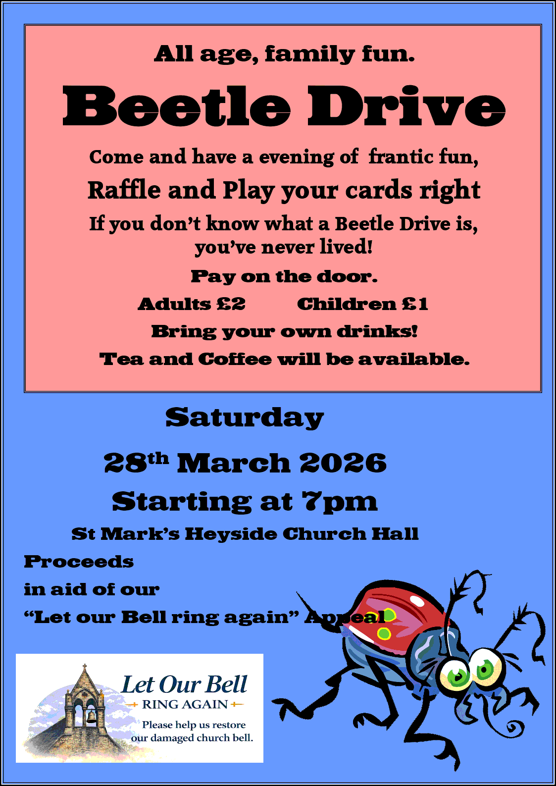 A quiz night for all the family, Teams of up to 6 people, £2 for Adults & 50p for Children. Bring your own drinks.