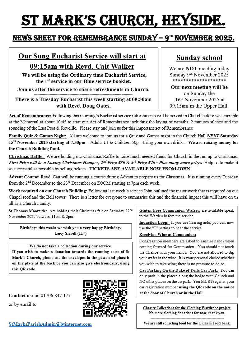 This Sunday's News Sheet